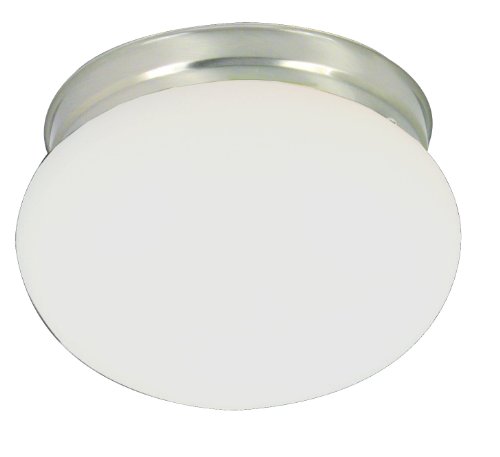 AF Lighting 558733 1 Light Flushmount Ceiling Fixture in Brushed Nickel with Frosted White ShadeThis ceiling fixture features a mushroom-shaped frosted white globe with modern brushed nickel accents.Features:Mushroom-shaped frosted white glass with Brushed Nickel accents UL ListedOne-Year WarrantySpecifications:Requires (1) x 60 Watt Medium Base Bulb (Not Included)Height: 5"Diameter: 8"