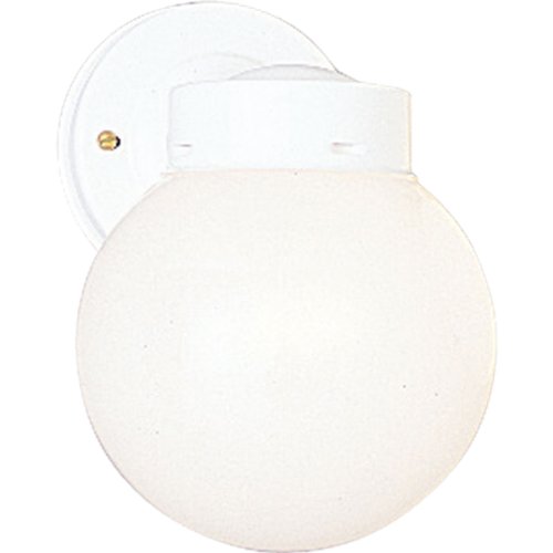 Progress Lighting P5604-30 Powder-coated finish. White 6 inch glass globe. White White 1-light Wall Lantern Features 6 in. white opal glass diffuser and durable powder-coated finish. White finish White glass 6 In. Width x 8-1/2 In. Height Uses (1) 100-watt medium base bulb