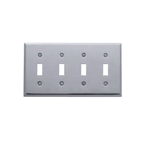 Switchplate:Quadruple Toggle - Classic, Finish:Polished Chrome These classic switch plates have squared, beveled edges and are forged from solid brass. Available in a wide variety of durable Baldwin finishes. Also available with different numbers of toggles. See options to select finish type and number of toggles. Sold individually. Note: Product finishes which are RELIEVED may vary in luster, hue, and appearance as a result of handcrafted variances in the final finishing step.