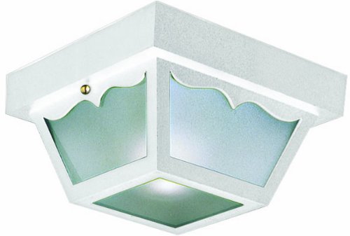 Finish:White Polypropylene, Glass:Frosted, Light Bulb:(2)60w A19 Med F Incand Flush outdoor ceiling mount
